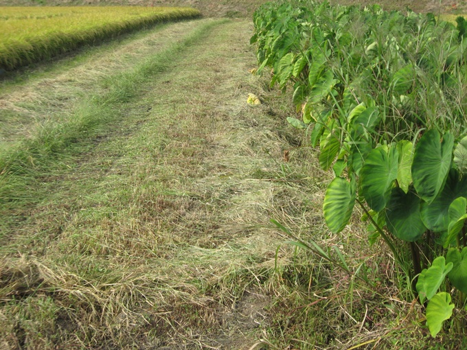 まだサトイモの畝間に草は少し残っていますが、下が乾燥していなかったため今日は止めておきました。