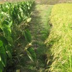 午後2時頃に管理機を持って第三農園に行き、早速草刈りを開始しました。サトイモの畝の西側部分と東側部分に残っていた草を刈り払う作業です。約30分で終わりました。