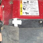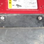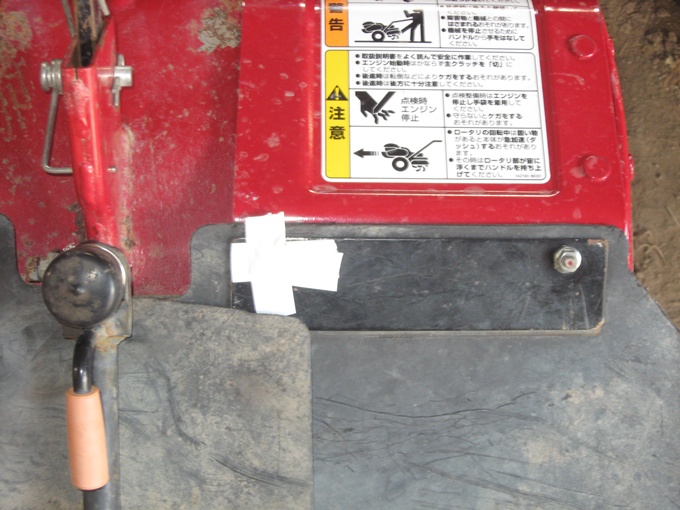 管理機のサイドカバーの後ろ側のゴム板を固定するネジ2本のうち1本がナシの状態で、念のためビニールテープを問題箇所に貼り付けていました。そのビニールテープをはがし早速ダイスでネジ山の修正作業を始めましたがうまくいきません。