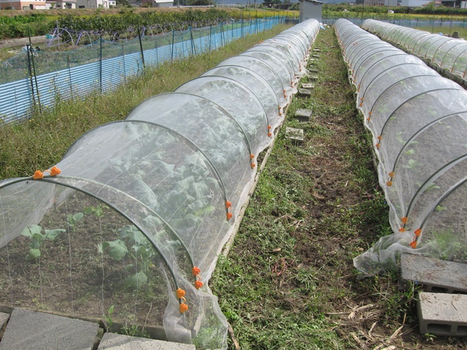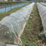 第一農園のメロン用畝の1列目にブロッコリーと白菜を植えていますが、まだ追肥が出来ていません。と言うのも、トンネル内に草が蔓延っているからです。ひとまず草を処理しないと追肥ができないのです。