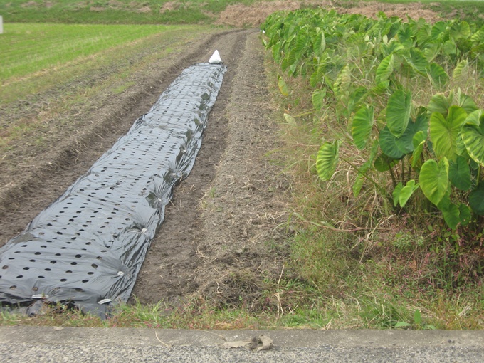 午前中に第三農園に行って玉ねぎ用畝の整備をレーキを使ってやっておきました。それから午後に黒マルチを持って再度田んぼに行きマルチを敷く作業をしました。手持ちのマルチが足らず後日延長する予定です。
