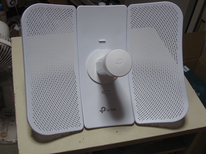 夕方になり今日届いたCPE710を開封し早速組み立ててみました。プラスチックの部分は軽いのですが、やはりアンテナの部分は鉄でできているため重量的には結構重いです。また、大きさも意外と大きかったです。長さが5mの25mmの太さの鉄パイプの先端に取り付けるのはちょっと厳しいかもしれません。