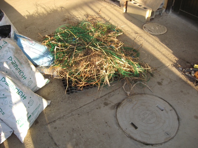 このままでは収納できないため今日枯草をネットから除去する作業をやっておこうと思っています。また、今月は浄化槽の清掃があるため浄化槽の周りを片付けておかなければいけません。