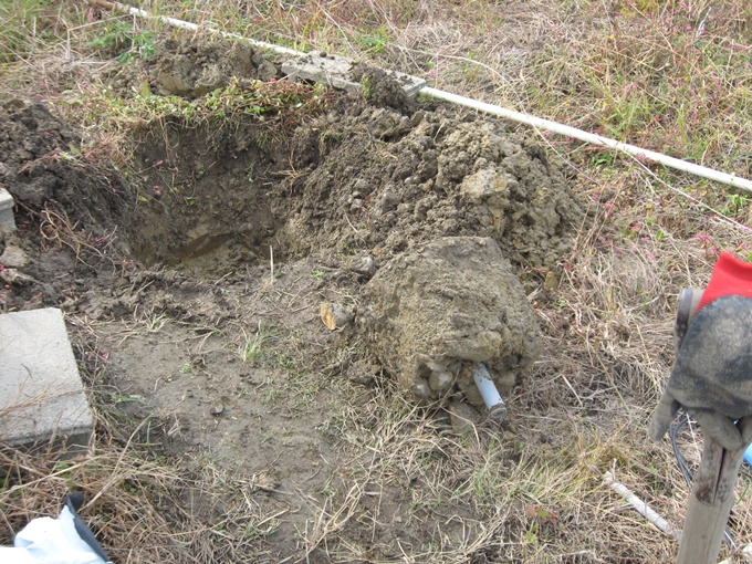 第二農園の監視小屋の横に立てているCPE用の25mmの鉄パイプのコンクリートベースを午後掘り出してみました。なんと手製のコンクリートベースでした。もう5年ほど前のものだったため完全に忘れていました。