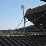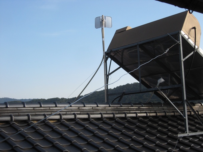 早速家側のCPEの設置です。屋根の上に上がり古いCPEと交換する作業を早速開始しました。前回のlanケーブルをそのままに残しておいたのでlanケーブルとの接続は簡単でした。上の写真が、家側のCPE710です。