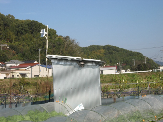次に、第一農園に行って監視小屋のCPEの交換作業をしました。作業中わずかな風が吹いても1m少々の鉄パイプが揺れました。この調子だと第二農園での設置は絶対無理だったと悟りました。作業完了後の様子が下の写真です。