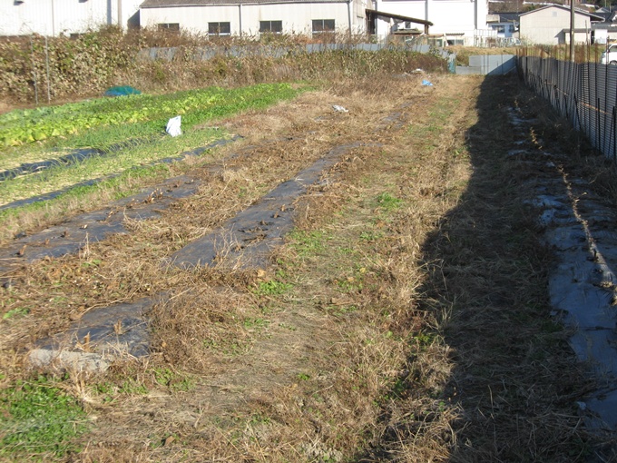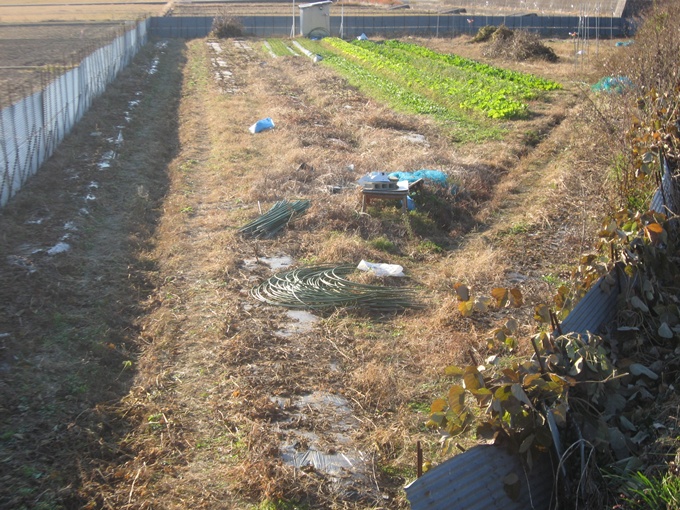 午前中で南端の畝が終わりいったん家に戻りました。なお、午前中には一輪車でほとんど黒豆の木を北側のとうもろこし跡地に運んでおきました。後日乾燥した後に燃やす予定です。