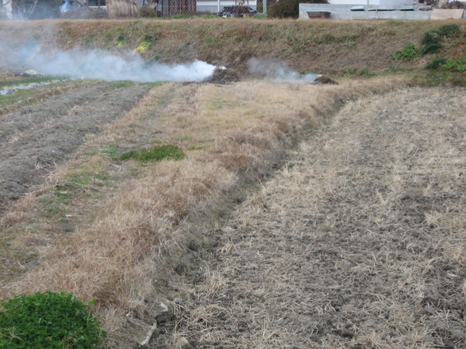 午後第三農園に行って枯草を燃やす作業をしました。草の山の下の方にあったものは湿っていて白い煙を出しながらなんとか燃えていきました。