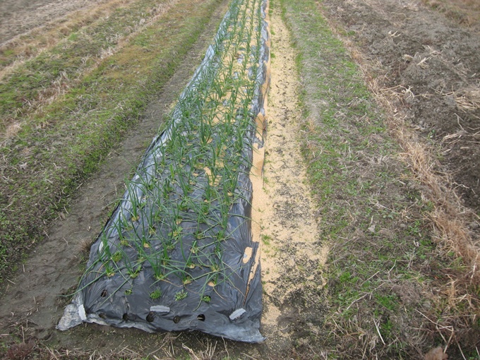なお、下の写真は、第三農園に植えている極早生玉ねぎの様子です。今年は、これまでに3回も液肥をジョウロでやったため、例年よりもよく育っています。ちょっと楽しみです。