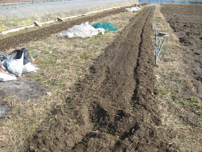明後日から最強・最長寒波がやって来ると言うので、今日中に第一農園のメロン用畝の隣の2本の畝を耕しておくことにしました。